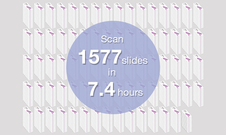 In this compact space, efficiency is key. During a throughput test with the four S20MD scanners, slides were continuously loaded throughout the day. In just 7.4 hours, the team scanned 1,577 slides averaging about 210 slides per hour in total, or around 53 slides per scanner. These were full-size diagnostic samples, not the small 15 mm × 15mm test slides often used in technical brochures. This makes the result a true reflection of the department’s daily efficiency.