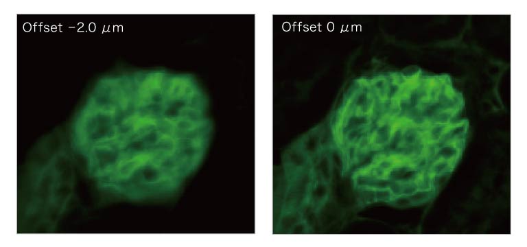 As seen in Image 3, the focus offset function enables precise adjustment of the focus plane for each wavelength. By setting the focus offset value for each stained object, clear images with accurate focus can be obtained across all wavelengths.