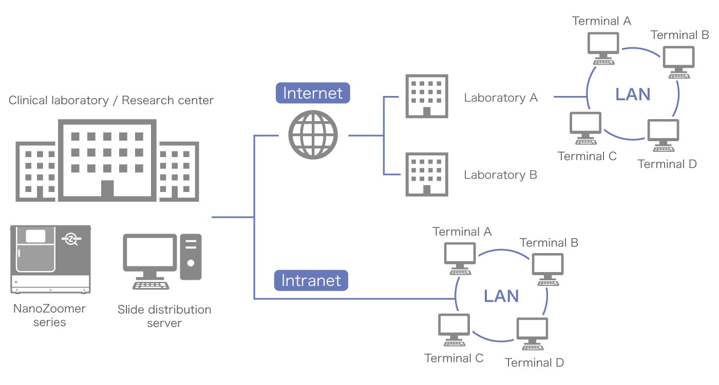 NZConnect Serve Basic is the image distribution software that efficiently distributes large-volume whole slide images scanned by the NanoZoomer® series via the Internet and/or Intranet. Access permission to the image database can be managed.
