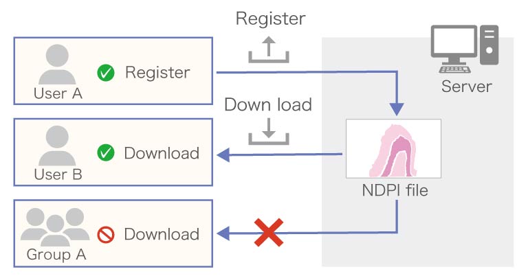 NZConnect Serve Basic is the image distribution software that efficiently distributes large-volume whole slide images scanned by the NanoZoomer® series via the Internet and/or Intranet. Access permission to the image database can be managed.